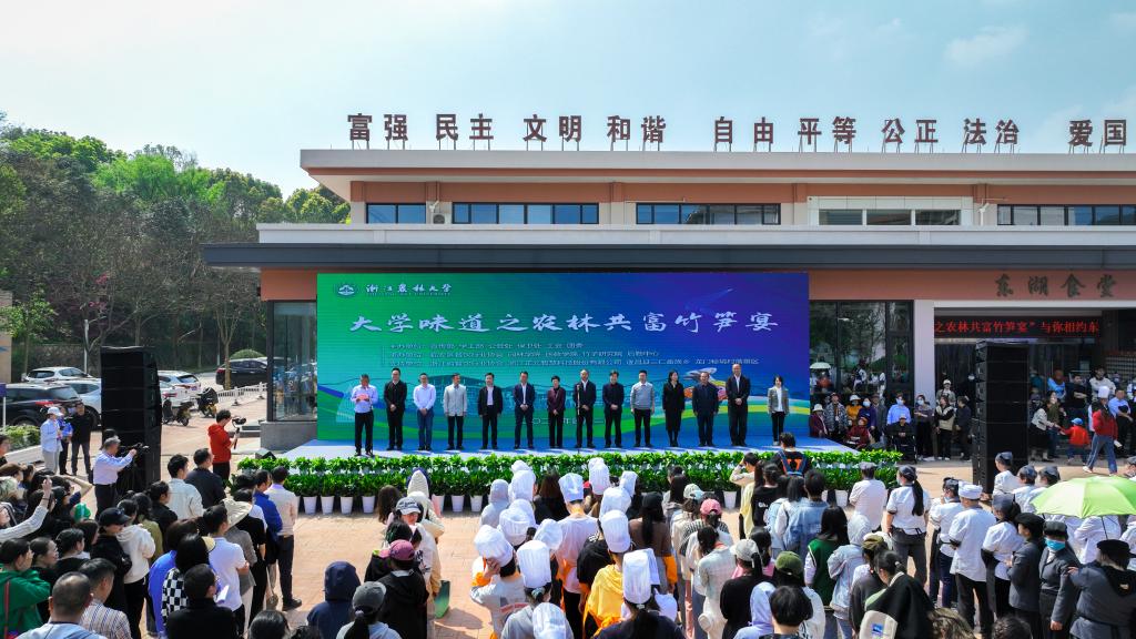“竹有美態(tài),美德,美味,可入詩(shī),入畫(huà),入佳肴。”伴隨著以竹、筍文化為主題的詩(shī)歌朗誦,農(nóng)林共富竹筍宴正式開(kāi)啟。本次竹筍宴系列活動(dòng)內(nèi)容豐富、形式多樣,10大子項(xiàng)活動(dòng)精彩紛呈。學(xué)校希望通過(guò)舉辦農(nóng)林共富竹筍宴系列活動(dòng),引導(dǎo)師生弘揚(yáng)竹文化、展現(xiàn)竹科技,深入踐行生態(tài)理念;希望廣大師生員工,能學(xué)習(xí)竹筍堅(jiān)韌不拔、奮發(fā)向上的精神品格,投身強(qiáng)農(nóng)興農(nóng)事業(yè),把論文寫(xiě)在希望的田野上、把科技成果撒在共富的大道上,為全國(guó)竹產(chǎn)業(yè)高質(zhì)量發(fā)展、為鄉(xiāng)村全面振興貢獻(xiàn)浙農(nóng)林大的智慧和力量。
