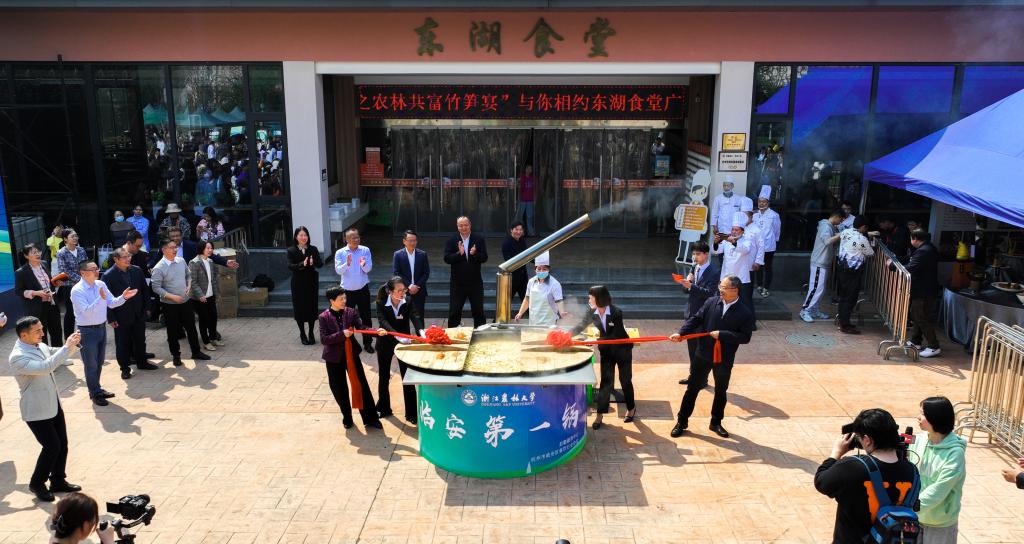 4月2日,學(xué)校在東湖校區(qū)舉行“大學(xué)味道之農(nóng)林共富竹筍宴”系列活動(dòng)。校黨委副書(shū)記施美紅宣布開(kāi)幕。副校長(zhǎng)胡祖吉致開(kāi)幕詞。施美紅、胡祖吉共同為農(nóng)林共富竹筍宴揭鍋。