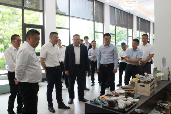 在朱斌的陪同下,胡剛一行赴校友客廳實地考察了遂昌農產品共富專柜的設立和展銷情況,并就入駐品類、銷售情況等問題進行了交流。