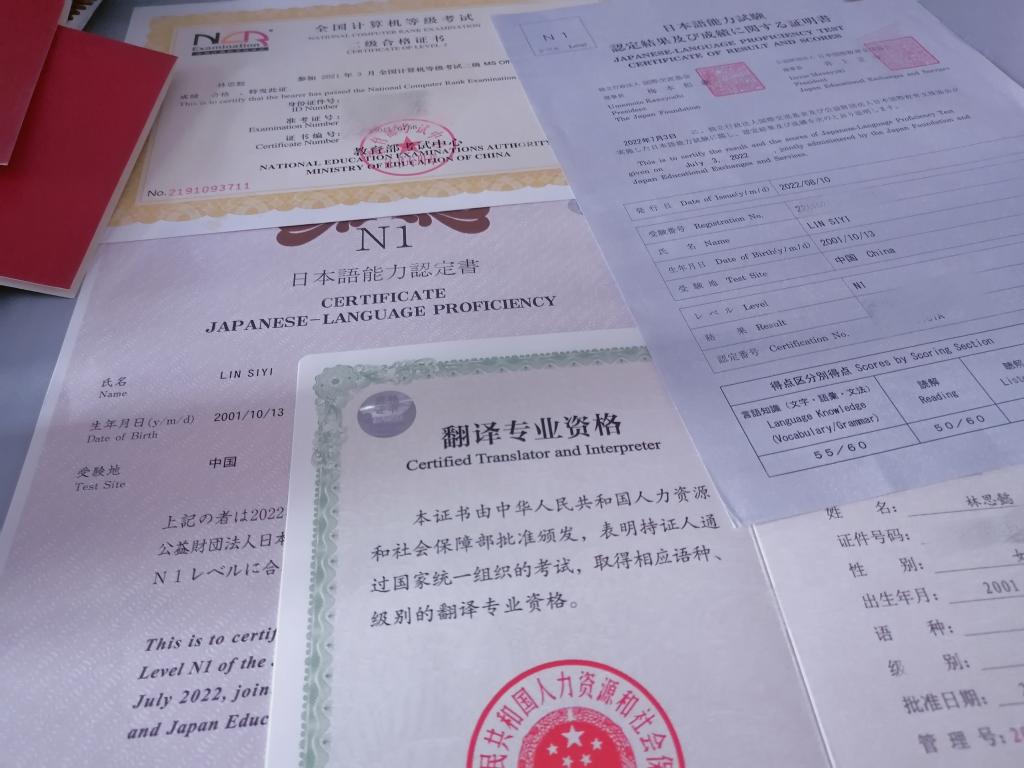 林思懿是個沉穩(wěn)的姑娘,平時參加各種活動不多,喜歡默默無聞地做喜歡的事情,而且做任何事情都喜歡腳踏實地。因為愛好英語、日語,她嘗試著參加相關(guān)的比賽,并先后獲得“外研社·國才杯”全國英語閱讀大賽三等獎、CATTI杯全國翻譯大賽大學(xué)A組中日筆譯三等獎,成功通過日本語能力測試N1、全國翻譯專業(yè)資格考試三級筆譯。