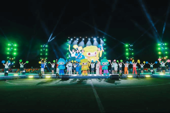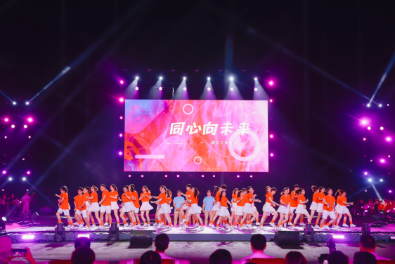 整場晚會貫穿“沒有舞臺、不止于舞臺”的理念,獨具匠心地在浙江農林大學戶外體育場設置兩個圓形區域,中間連通形成“工”字造型,體現活動的開放性包容性。來自全省18所高校的教職工演員組合成由杭州亞運會吉祥物蓮蓮、宸宸、琮琮所代表的三大方陣,互相競歌、競舞、競演,為大家奉獻了一場別開生面的沉浸式視聽盛宴。