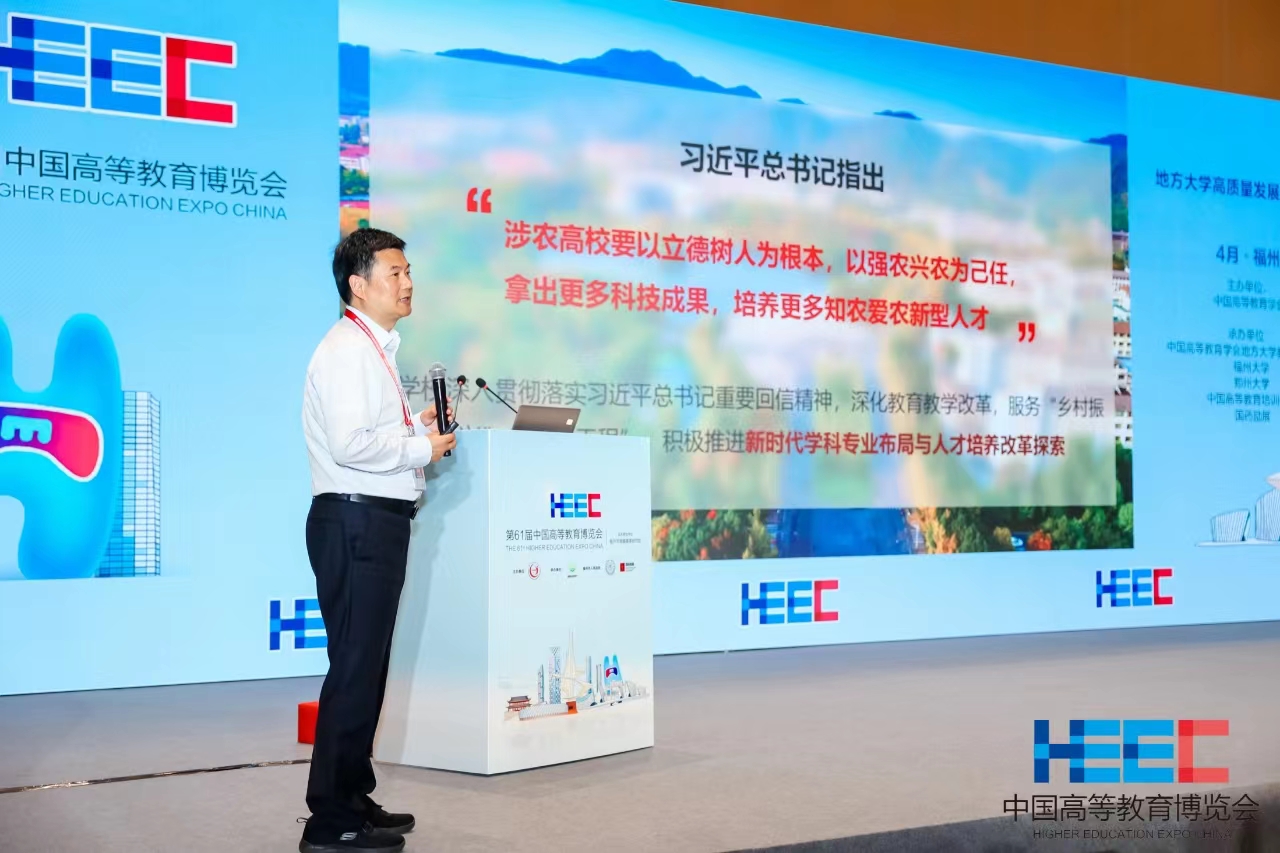 在地方大學(xué)高質(zhì)量發(fā)展論壇上,沈希作題為“新時代涉農(nóng)高校學(xué)科專業(yè)布局與人才培養(yǎng)改革探索”的主旨報告。他深入分析了新時代地方特色高校面向新質(zhì)生產(chǎn)力的人才培養(yǎng)定位和目標,系統(tǒng)闡述了學(xué)校人才培養(yǎng)改革的新理念、新思路、新舉措,著重分享了學(xué)校在卓越農(nóng)林“工程師”人才培養(yǎng)和定向農(nóng)科生人才培養(yǎng)等方面的做法和實踐。