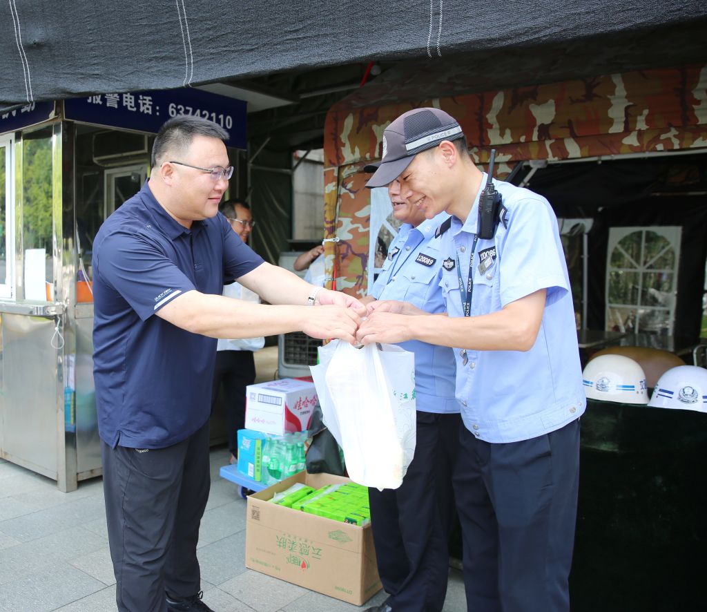 朱斌先后走訪慰問了校園保衛人員、科研工作人員、工程施工人員、后勤保障人員以及招生工作人員。每到一處,朱斌都與大家親切交談,向不畏辛勞堅守崗位的教職工表示感謝,并叮囑大家要注意防暑降溫,合理安排工作與休息,保持高效的工作狀態。