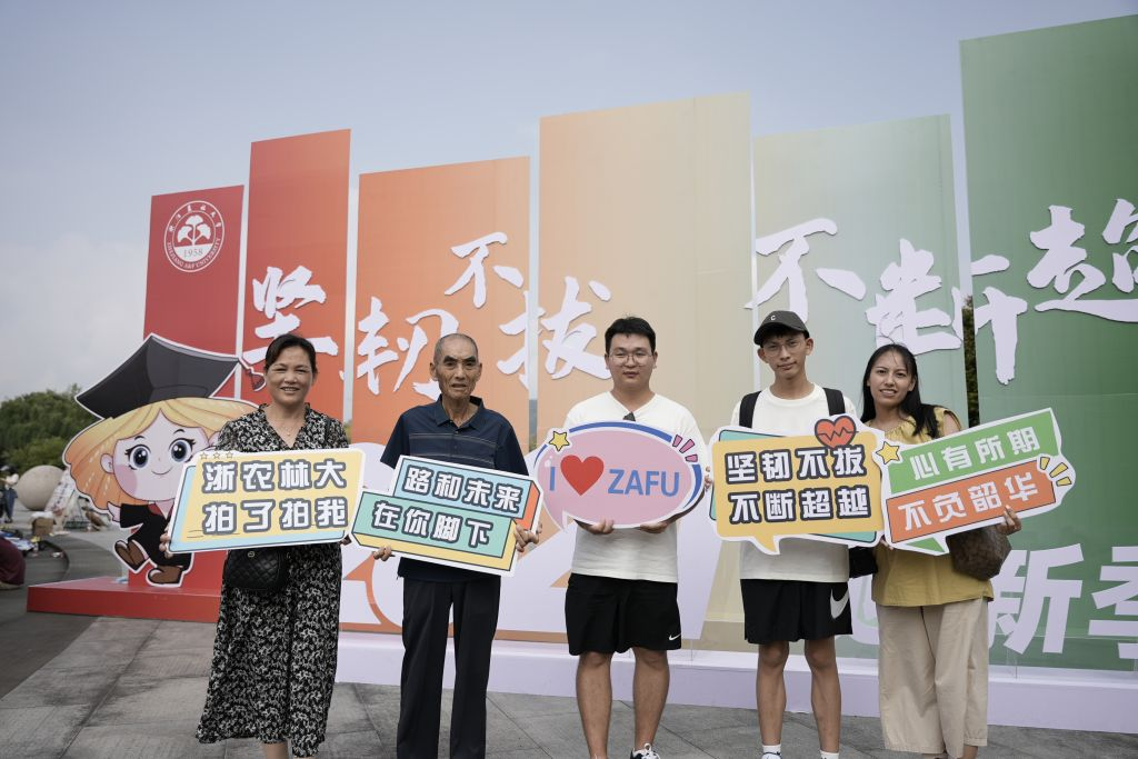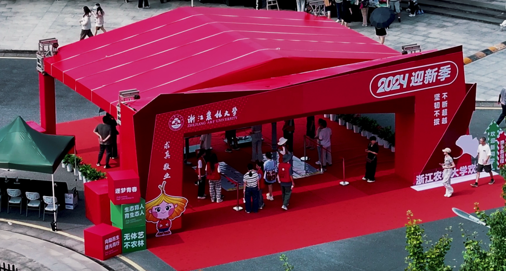 校門口的“歡迎新同學”遠遠地向前來報到的2024級新生招手,五舟廣場上“堅韌不拔、不斷超越”造型吸引了眾多學生和家長打卡,電子屏上“肯干、實干、能干,夢想在浙農林大啟航”等標語,生活區設置了許多溫馨的打卡造型,都在盡情地表達著對2024級全體新生的祝福與期待。各學院還為新生準備了各式文創紀念品,處處洋溢著喜迎新生的濃厚氛圍。