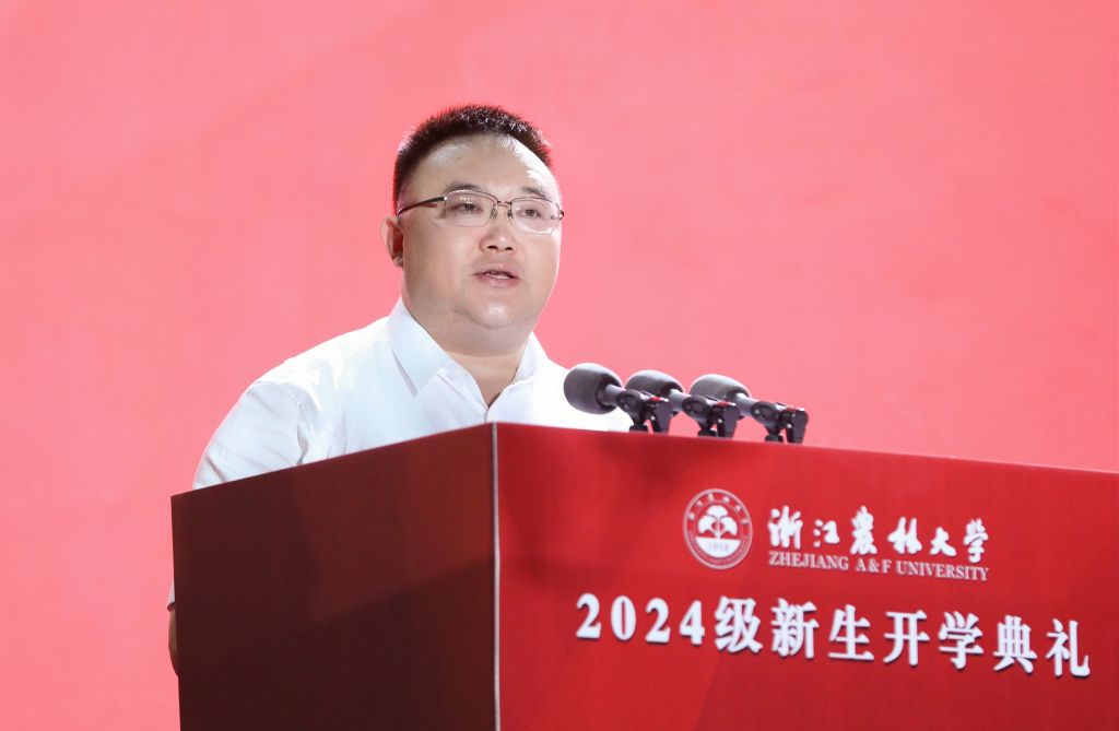 校黨委書記朱斌教授代表學校對全體新生表示熱烈歡迎,并作題為《從愛出發行未來》的講話。他指出,當前學校各項事業已經邁入高質量、高水平、高速度發展的快車道,取得了包括進入浙江省“雙一流196工程”高水平大學建設高校行列、林學學科列入登峰學科、榮獲國家級教學成果獎一等獎、新農科教育教學中心大樓拔地而起等一系列成果。