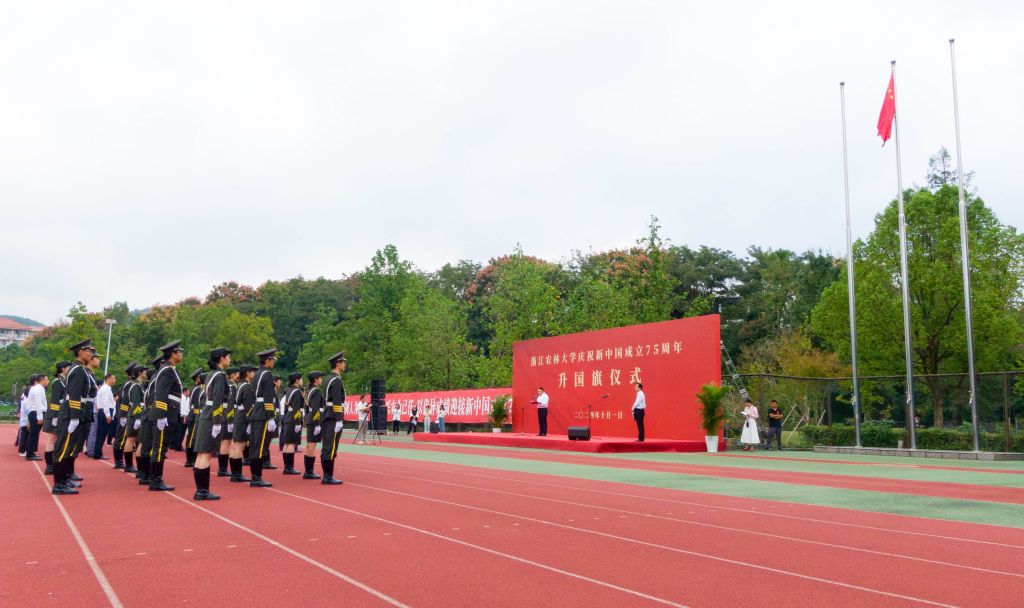 10月1日上午,學校在東湖校區A區田徑場隆重舉行浙江農林大學慶祝中華人民共和國成立75周年升國旗儀式。
