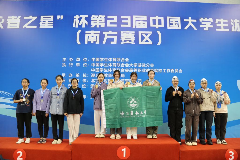 10月13日-17日,第23屆中國大學生游泳錦標賽(南方賽區)在貴州省遵義市奧體中心游泳館舉行。我校獲得了2金3銀2銅,并獲得女子團體總分第三名,也是我校參加全國比賽以來首次進入團體前三名。