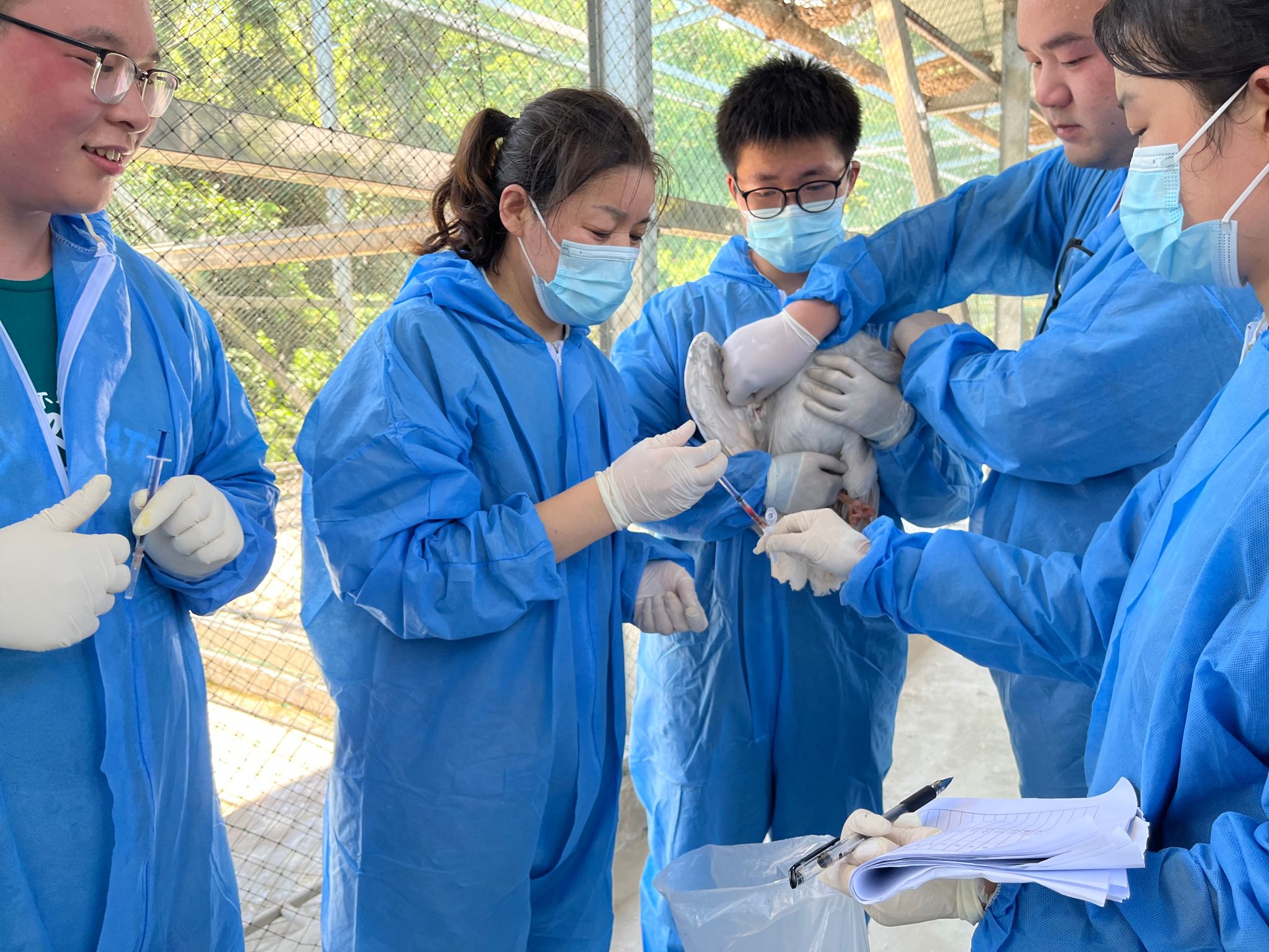 在指導學生參加競賽的同時,楊永春也積極參與社會服務。2016年,德清朱鹮繁育基地突發傳染病。聽聞此事,楊永春立即動身前往現場,因為她知道對于朱鹮這樣瀕危的野生動物來說,一次疾病足以導致整個基地幾十年的努力化為泡影。“可以用心驚肉跳來形容我的工作,但最后都化險為夷,這種解決問題后的喜悅是難以用語言形容的!”除了指導中國南方朱鹮種群重建活動,她還為杭州動物園、杭州野生動物世界、安吉百草園等野生動物園提供技術幫助。
