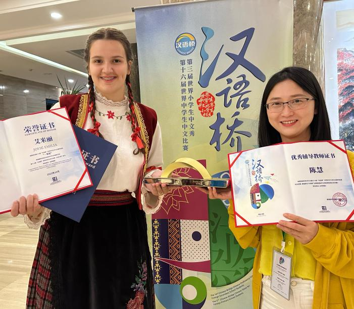 就在一年前,蘇菲的姐姐,17歲的艾米麗(Emilia Jovic)也獲得了第十六屆“漢語橋”世界中學生中文比賽一等獎。這對姐妹花在諾維薩德大學孔子學院里,在浙江農林大學選派的老師悉心指導下,她們一起學習、一起成長、一起逐夢。
