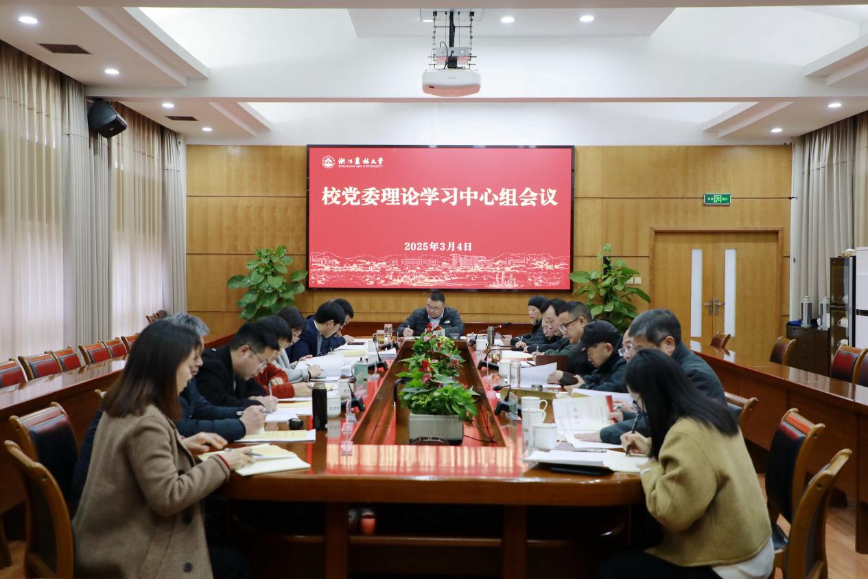 3月4日下午,校黨委書記朱斌主持召開黨委理論學(xué)習(xí)中心組會(huì)議,專題學(xué)習(xí)習(xí)近平總書記重要指示批示和重要回信精神,學(xué)習(xí)貫徹2025年中央一號(hào)文件精神,學(xué)習(xí)傳達(dá)《教育強(qiáng)國建設(shè)規(guī)劃綱要(2024—2035年)》、浙江省新春第一會(huì)、浙江省教育強(qiáng)省建設(shè)大會(huì)、全省高校黨的建設(shè)工作會(huì)議等精神。