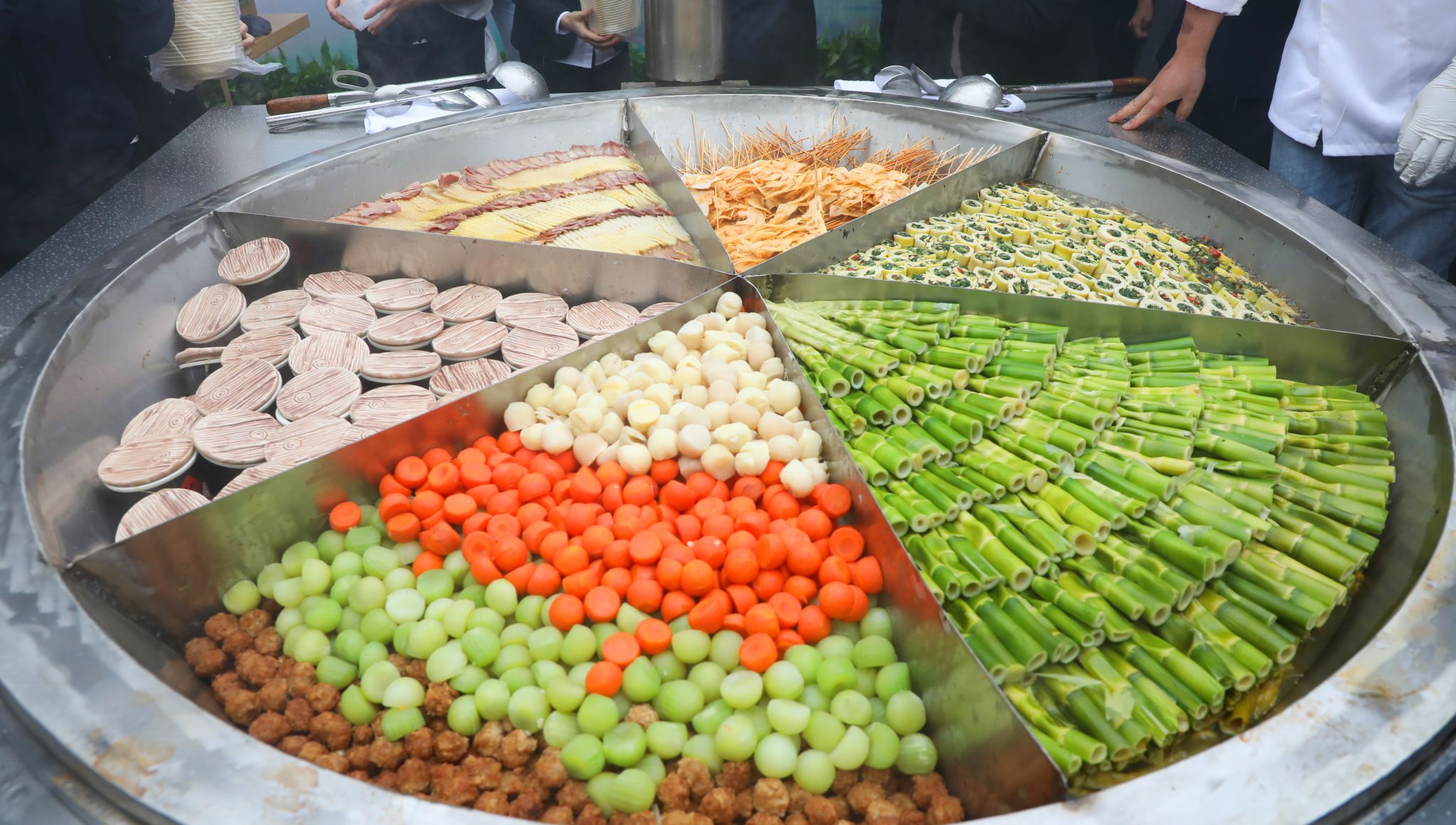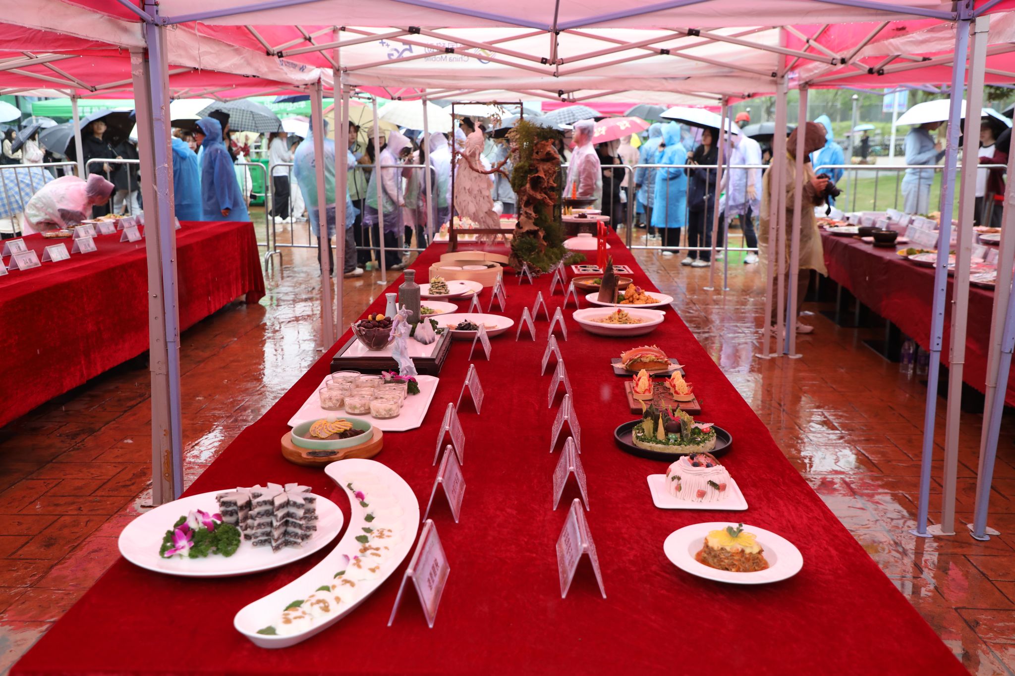 本屆農林“筍”宴系列活動分為筍香盈袖來、竹韻流芳遠、巧手烹春味、竹林嬉春趣四大主題,共11項特色活動輪番上演。在竹筍宴品嘗區,12道菜肴以“青竹承脈·地標領鮮”為主題,以“地標十二鮮”為名,由后勤中心和區市場監管局聯合推出,體現一年十二個不同風味的當季筍類及全國地理標志產品菜肴。種類繁多的美食讓人目不暇接,引得近千名師生爭相品嘗,領略中華美食背后豐富的竹文化底蘊和匠心精神。