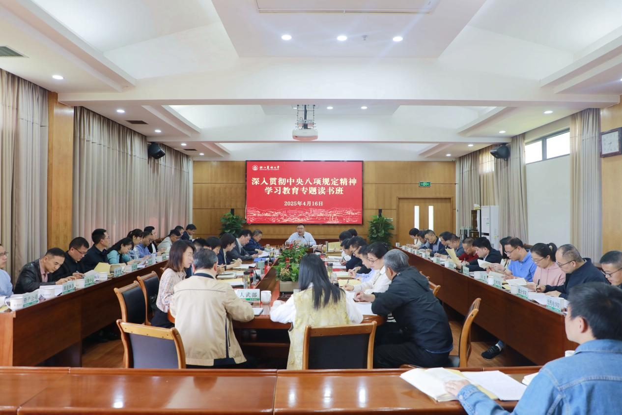 4月16日上午,校黨委書記朱斌主持召開黨委理論學習中心組擴大會議,開展深入貫徹中央八項規定精神學習教育專題讀書班研討交流,學習貫徹習近平總書記關于加強黨的作風建設的重要論述,傳達學習習近平總書記在貴州、云南考察時的重要講話精神,結合習近平文化思想、維護意識形態安全專題學習,扎實推動學習教育走深走實。