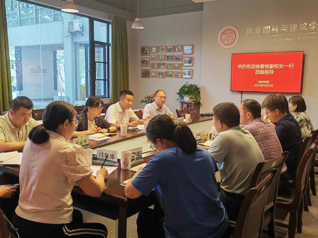 近日,副校長徐愛俊一行到園林學(xué)院指導(dǎo)工作。學(xué)院領(lǐng)導(dǎo)班子、各學(xué)科負(fù)責(zé)人、學(xué)位點負(fù)責(zé)人等參加了會議。