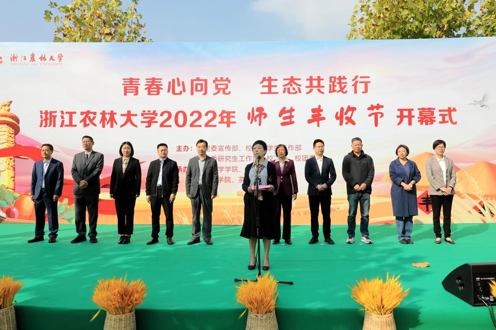 10月23日上午,“青春心向黨 生態(tài)共踐行”浙江農(nóng)林大學(xué)2022年師生豐收節(jié)開幕式在農(nóng)作園舉行。校黨委副書記施美紅,副校長沈月琴,黨委委員、宣傳部部長倪建均出席開幕式。學(xué)校相關(guān)職能部門負責(zé)人、承辦學(xué)院師生代表等參加開幕式。