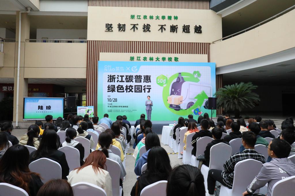10月27日,天貓雙11綠色物流發布會暨50g減碳聯盟啟動儀式在活動中心舉行。活動中,菜鳥綠色物流發布了雙十一50g減碳聯盟號召,并授予我校菜鳥驛站“減碳標桿驛站”獎牌。
