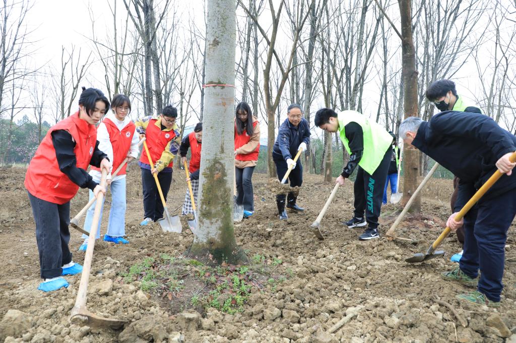 在大家的努力下,師生們植下三角楓、櫸樹等鄉土樹種一百余棵,為東湖校區又增添了一抹濃綠。學校植物園辦公室也充分把握好時節,于近期開展二環路行道樹提升、校友捐贈名貴植物進校園等工作,力爭將校園環境打造的更為優美。