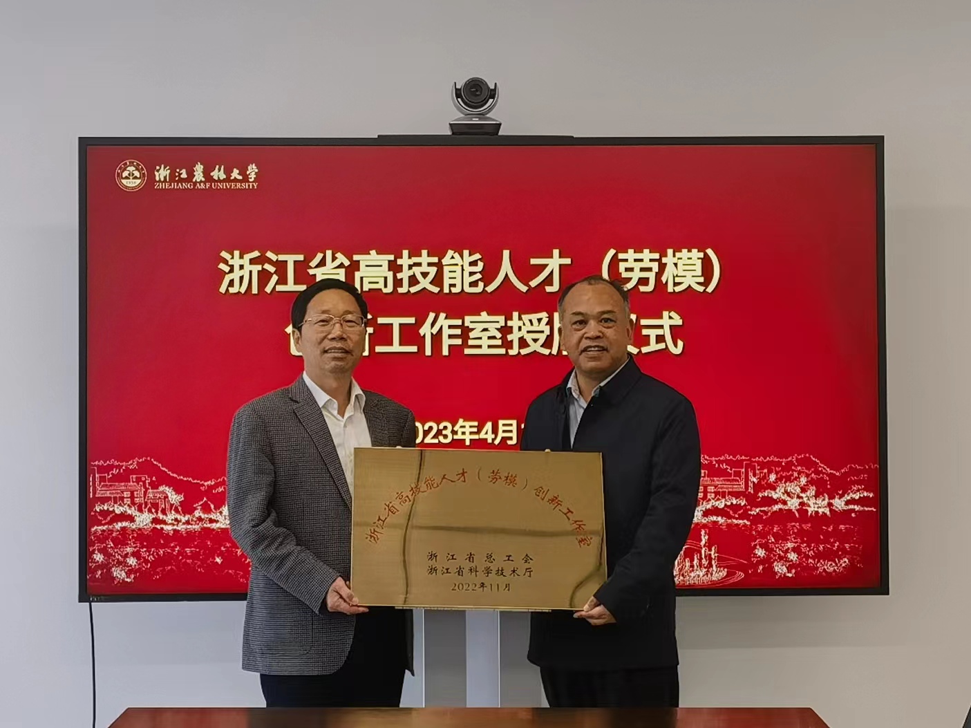 4月17日,浙江省高技能人才(勞模)創新工作室授牌儀式舉行,校黨委副書記、工會主席馮尚申為省部共建亞熱帶森林培育國家重點實驗室副主任黃堅欽授牌。校工會、林生院負責人等出席儀式。