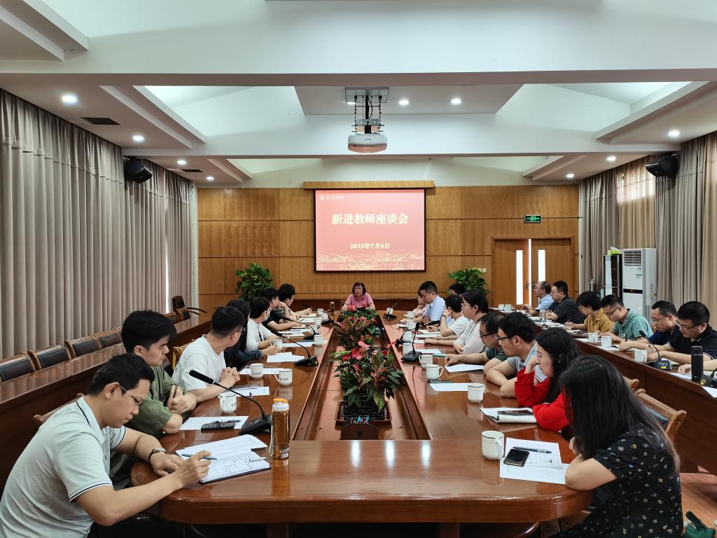 7月6日上午,學校召開新進教師座談會。副校長沈月琴,研究生院、人事處、教務處、科技處、文科處、教師發展中心、設備處、計財處、公管處、圖書館等單位負責人,以及20余名新進教師參加了座談會。