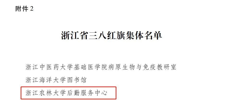 日前,浙江省婦聯公布浙江省三八紅旗手(集體),浙江省婦聯系統先進工作者、先進集體表彰名單。校婦聯獲評省婦聯系統先進集體,后勤服務中心獲評省三八紅旗集體。