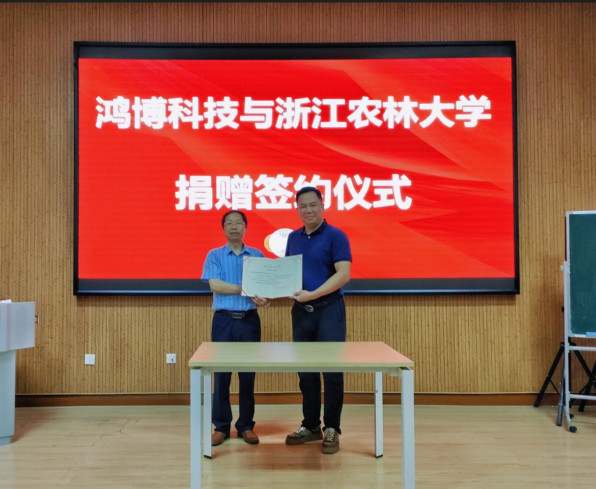 會上,馮尚申向汪恩鋒校友頒發了捐贈證書,見證了離退休辦與杭州鴻博輻照科技有限公司的簽約儀式。