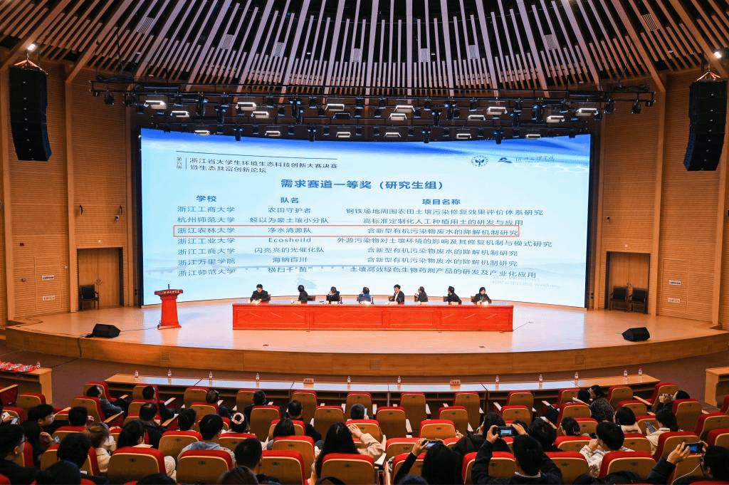 本屆大賽以“綠色低碳,數智賦能”為主題,設立自主賽道和需求賽道,以增加學校和社會、企業的聯系,引導高校師生把科研創新做在祖國大地上。決賽期間還開展了生態共富創新論壇。全國高校黃大年式教師團隊帶頭人、浙江省特級專家周國模、王祥科、浙江省生態環境低碳發展中心副主任吳健、浙江益壤環保科技有限人司董事長羅春暉等專家學者,作了主題報告。