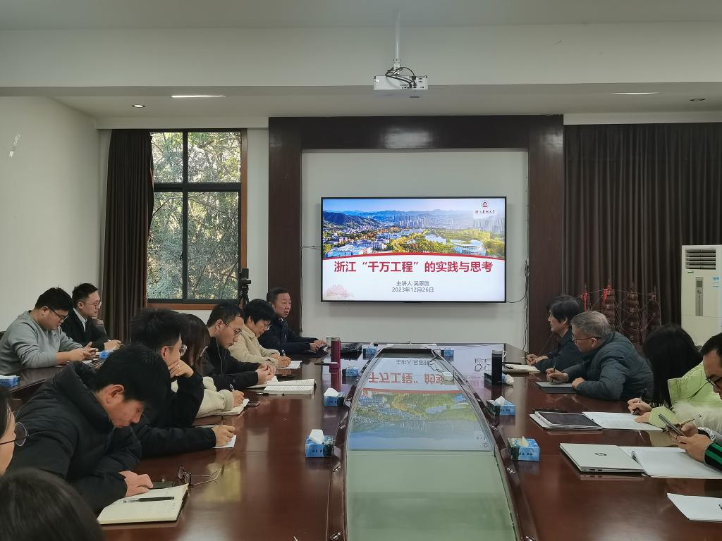 12月26日,副校長吳家勝以“浙江‘千萬工程’的實踐與思考”為題,為經濟管理學院農經學科教工黨支部全體黨員上了一堂生動的黨課。農經教工支部書記吳偉光和支部黨員參加此次黨課。