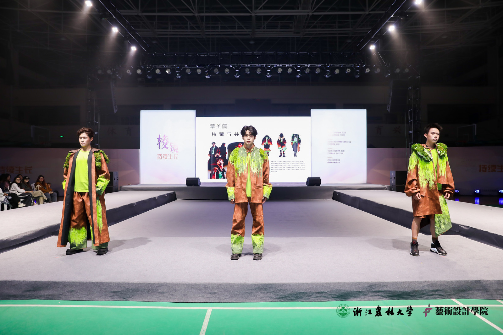 當晚,“棱鏡·生長”生態服裝秀驚艷亮相,46名2025屆本科畢業生以天地間的自然元素為創意,將山川的脈絡、草木的紋理、花鳥的靈動,巧妙融入服裝設計的每一處細節。他們匠心獨運,選用各類可持續材料,精心雕琢出一系列既洋溢著藝術美感,又深深烙印著環保理念的服裝佳作,被師生稱贊為“最美畢業論文”。
