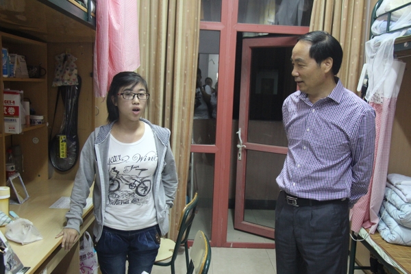 周國模走訪學生寢室 贊學生“愛寢如家”