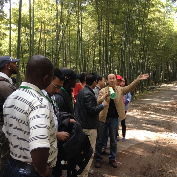 我校非洲農(nóng)林研究院院長(zhǎng)樓一平博士在北京以“竹林可持續(xù)經(jīng)營(yíng)以及在緩解和適應(yīng)氣候變化中的作用”為題,對(duì)學(xué)員開(kāi)展了竹林生態(tài)經(jīng)營(yíng)的理論培訓(xùn)。同時(shí),在學(xué)員們?cè)诎布獏⒂^我校總面積為2000畝的“毛竹林固碳減排綜合技術(shù)示范”實(shí)驗(yàn)區(qū)時(shí),樓一平為學(xué)員們講解了毛竹林可持續(xù)經(jīng)營(yíng)增匯的技術(shù)試驗(yàn),學(xué)員們對(duì)毛竹碳匯林營(yíng)造與竹林碳匯經(jīng)營(yíng)增匯技術(shù)表現(xiàn)了極大興趣,結(jié)合各自的國(guó)情認(rèn)真學(xué)習(xí),并展開(kāi)了熱烈討論。
