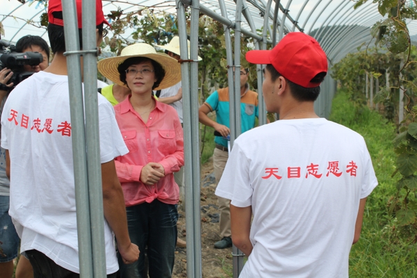 今年,我省遭遇罕見高溫天氣,俞明均的紅心獼猴桃基地受到干旱的嚴重挑戰(zhàn),產(chǎn)量受到較大影響。面對干旱對農(nóng)業(yè)生產(chǎn)的嚴重影響,天目學院團委積極響應團省委號召,動員團員青年積極參與防旱抗旱,主動聯(lián)系諸暨團市委,組織大學生抗旱志愿者隊伍深入抗旱第一線。周艷一行實地考察時,天目學院12名大學生抗旱志愿者正在果園幫忙澆水摘果。周艷看望了抗旱支援者,與同學們進行了親切交流。她希望同學們在志愿服務中受教育、長才干、做貢獻。