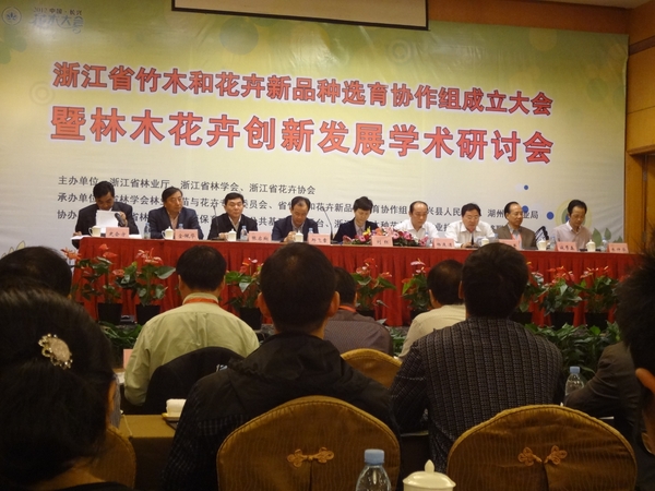 浙農林大新聞網訊 10月27日,由省林業廳、省林學會、省花卉協會主辦的“浙江省竹木和花卉新品種選育協作組成立大會暨林木花卉創新發展學術研討會”在浙江長興召開。中國花協秘書長劉紅、國家林業局國有林場和林木種苗工作總站副總站長楊連清、省科技廳副廳長邱飛章、省林業廳副廳長楊幼平和我校副校長金佩華等出席會議并講話。我校林學一級學科林木遺傳與品種選育、園林植物與觀賞園藝方向教師參加會議。