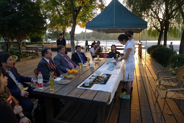 會后,副校長張立欽親切會見了Charles Harrington一行,對他們的來訪表示了熱烈的歡迎。文化學院的學生還為來賓表演了茶藝,贏得了來賓的稱贊。
