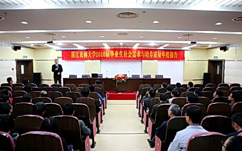 浙農(nóng)林大新聞網(wǎng)訊 11月9日,麥可思公司首席專家王伯慶應(yīng)邀到我校作“浙江農(nóng)林大學(xué)2010屆畢業(yè)生社會(huì)需求與培養(yǎng)質(zhì)量報(bào)告”的解讀。副校長(zhǎng)張立欽,各部門負(fù)責(zé)人,各學(xué)院(部)黨政領(lǐng)導(dǎo)、學(xué)科負(fù)責(zé)人、專業(yè)負(fù)責(zé)人、教師代表以及教務(wù)處、學(xué)生處全體老師參加了報(bào)告會(huì)。報(bào)告會(huì)由教務(wù)處處長(zhǎng)邵千鈞主持。
