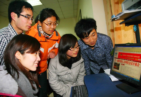 當天,第十一屆全國人民代表大會第四次會議開幕,我校師生分別通過電視、電臺、網絡、報紙等各種形式,收看、收聽有關情況,希望從中了解到關于教育、農業、就業等和自己相關的信息。(新聞中心 天衣)