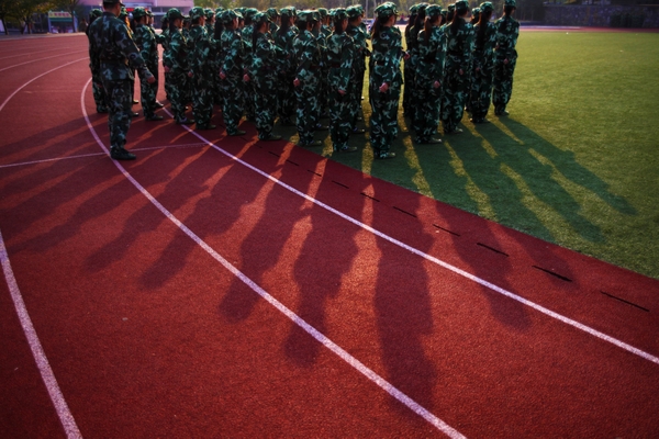 夕陽拉長我們著軍裝的筆直身影,青春被定格在這一刻,時光都不愿意溜走。