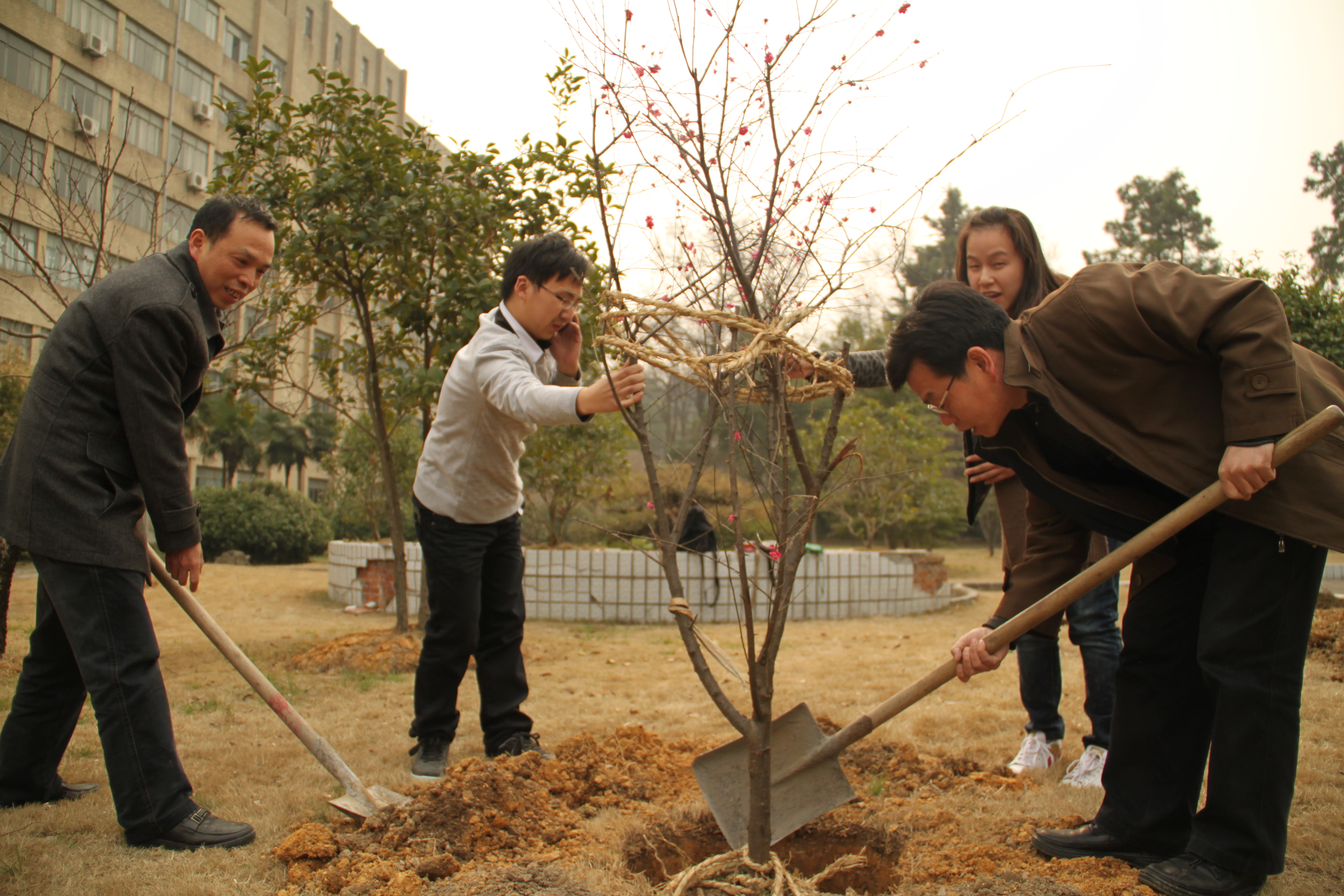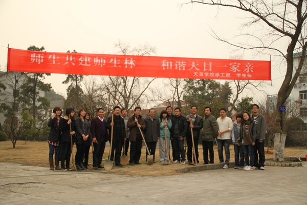 3月11日下午,天目學院院在桃李苑組織開展了以“師生共建師生林 和諧天目一家親”為主題的植綠活動。學院領導師生一起拿起鐵鍬松土、種樹、澆水,干勁十足,熱火朝天。經過一個下午的努力在桃李苑種上了山茶、桂花、紅梅等十余株樹苗,為美麗的衣錦校園又增添了幾分綠意和生機。