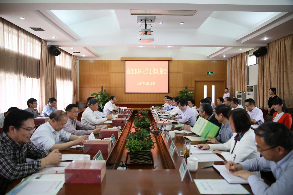 省林業廳廳長林云舉、省政府辦公廳副主任蔣珍貴、省國土資源廳副廳長夏曉鴻、省農業廳副廳長葉新才、杭州市副市長王宏、臨安市委書記盧春強等陪同調研。校黨政班子成員參加調研座談。