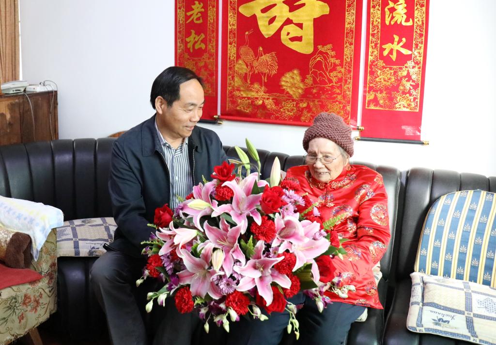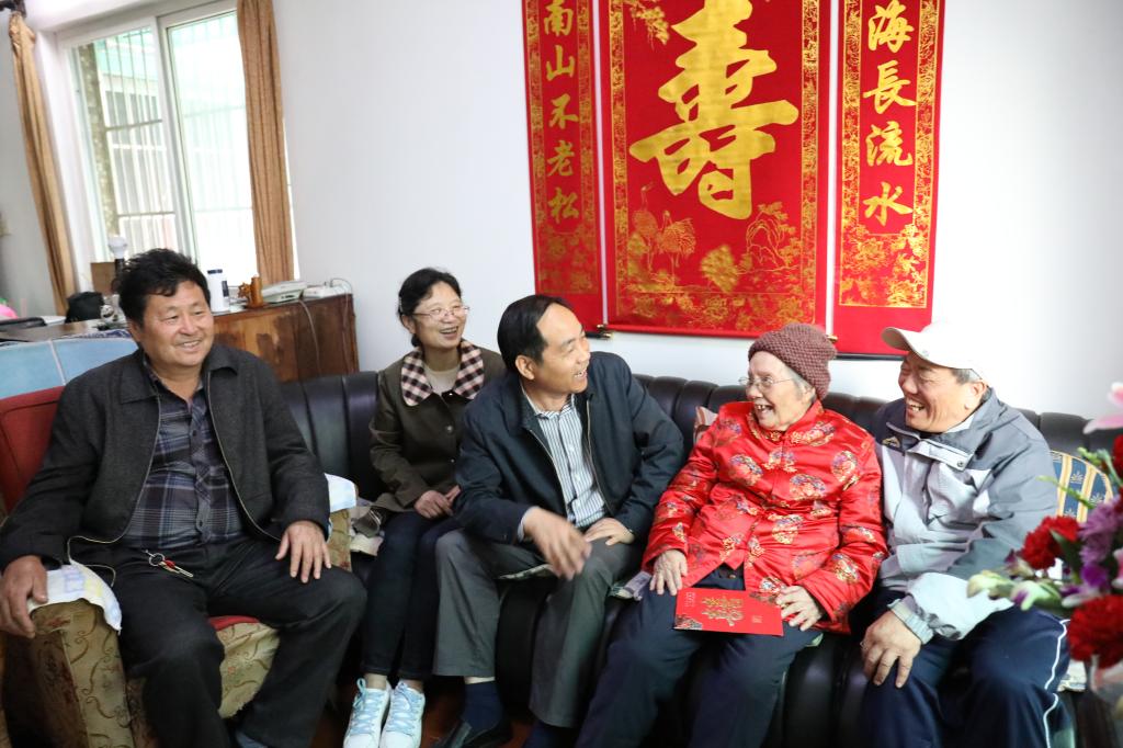 4月25日,在趙梅老師百歲壽辰來臨之際,校黨委書記周國模專程登門慰問,送上誠摯的生日祝福。