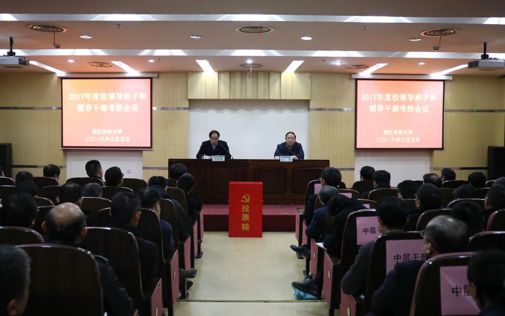 35日下午,學校領導班子和領導干部2017年度考核工作會議在圖書館第二報告廳召開。