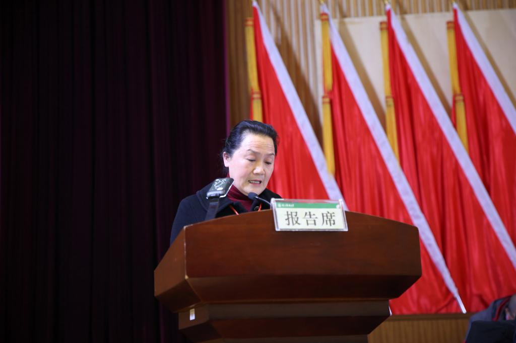 校工會主席張霞妃以《秉持初心 牢記使命 努力開創新時代工會工作新局面》為題向大會作了工會工作報告。