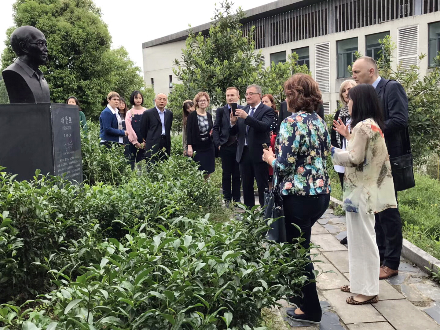 代表團一行參觀了漢語國際推廣茶文化傳播基地、茶文化學院、圖書館和竹種園等,實地考察了青山湖科技城和臨安區中小學。