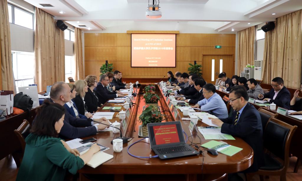孔子學院理事、諾維薩德市圖書館負責人、諾維薩德大學經濟學院院長、孔子學院教學點校長代表,校人事處、教務處、科技處、國際處、文化學院、國際學院、孔子學院等單位負責人參加會議。