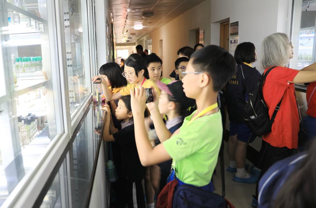 小學生們來到智能實驗樓,聽取國家重點實驗室相關情況的介紹,包括發展歷程、研究內容、科研團隊、科技成果等。接著,小學生們跟隨講解員先后來到森林文化館、植物組培室、翠竹園,很多小朋友是第一次近距離看到山核桃、香榧、毛竹、南方紅豆杉、光皮樺等實物和豐富多彩的生態科技文化產品,驚奇不已。香港小學生了解到植物從“試管嬰兒”到“開花結果”的生長發育過程,直觀感受了實驗室濃厚的科學氛圍。在翠竹園,看到剛剛出土的竹筍,看到形態迥異的竹種,小學生們非常興奮,視野得到擴展。