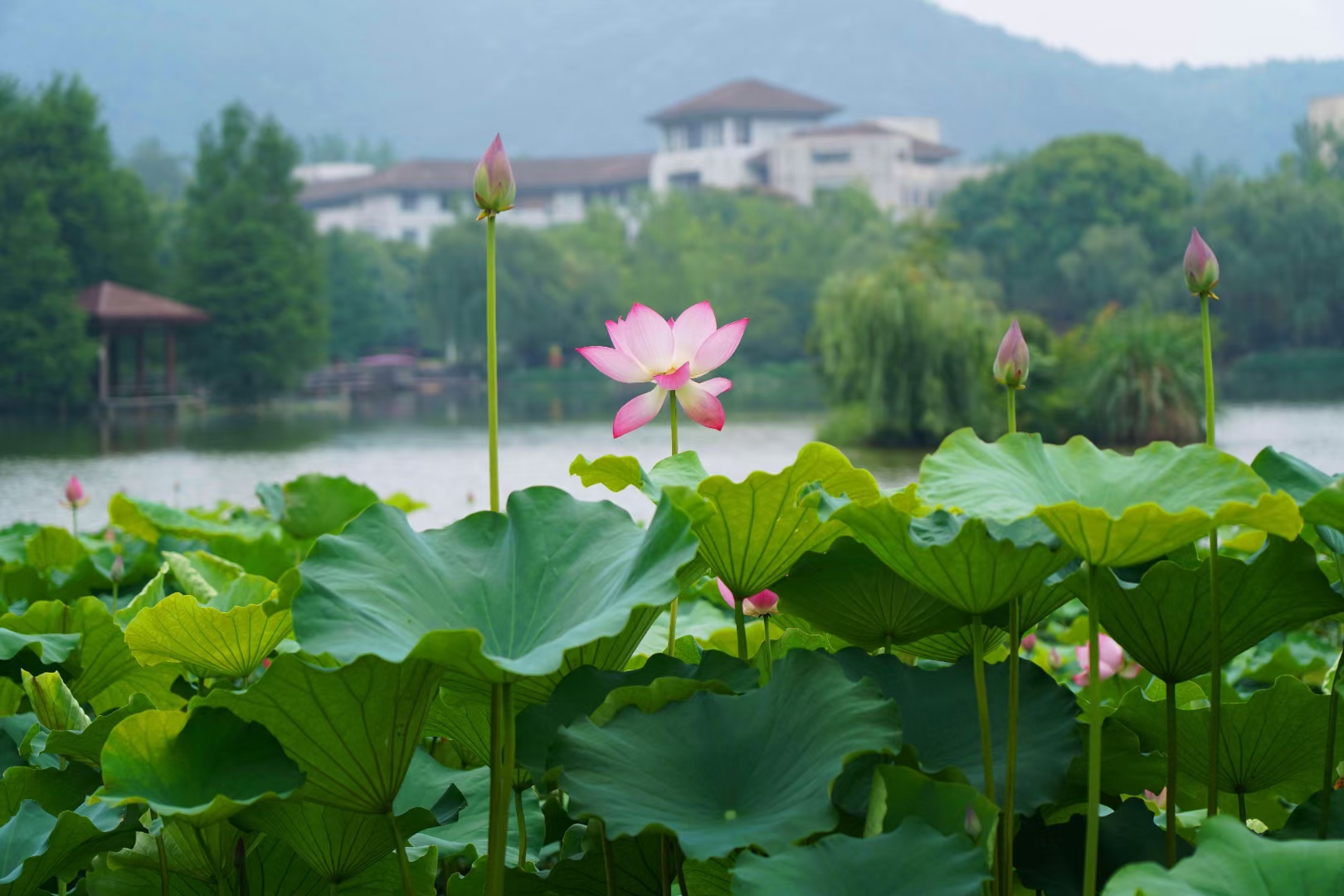 蕩漾的東湖總能讓人流連忘返,看那泛著粼粼波光的湖水,是順著陽光而下的仙子在水面上舞蹈。湖中的小島四面環(huán)樹繞水,小鳥戲耍在樹枝尖頭,天鵝繞島游行。清澈的湖水上是綻放著的蓮花,粉白交雜,這是夏天的斗妍。偶遇雨季的東湖,煙雨蒙蒙,將綠藻下的魚兒和樹枝上的夏鳥藏匿在仙境中。