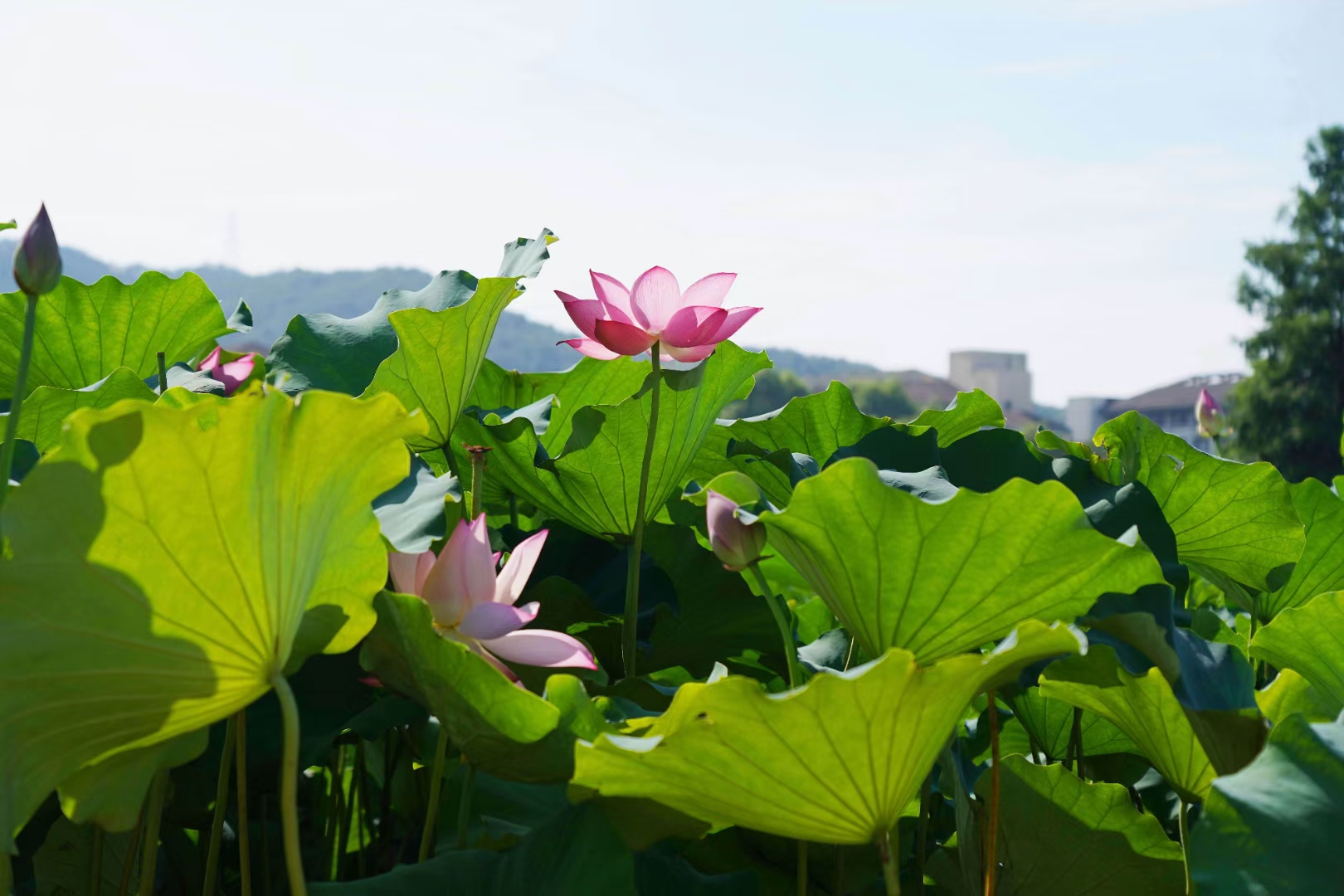 沐浴在夏日暖陽中的浙農(nóng)林,道不盡的綠樹陰濃,百花鮮妍。清澈透明的天空,時斷時續(xù)的蟬鳴,隨風搖曳的綠葉,在這充滿悸動與活力的夏日中,相得益彰,令人沉醉。賞蔥蔥綠意,感濃蔭幽靜。在橫斜交錯、深淺不一的蒼翠欲滴中,一片綠葉的朦朧睡意也清晰可見,夏天在五舟廣場上翩然起舞。