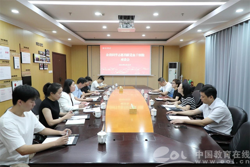 9月23日上午,余濤同學(xué)即將出發(fā)捐獻(xiàn)造血干細(xì)胞之前,學(xué)校舉行了座談會(huì)。校領(lǐng)導(dǎo)對(duì)余濤同學(xué)的善舉表示崇高的敬意和最衷心的感謝,同時(shí)鼓勵(lì)更多的學(xué)生參與到社會(huì)公益活動(dòng)中來(lái),做有擔(dān)當(dāng)?shù)男聲r(shí)代青年。