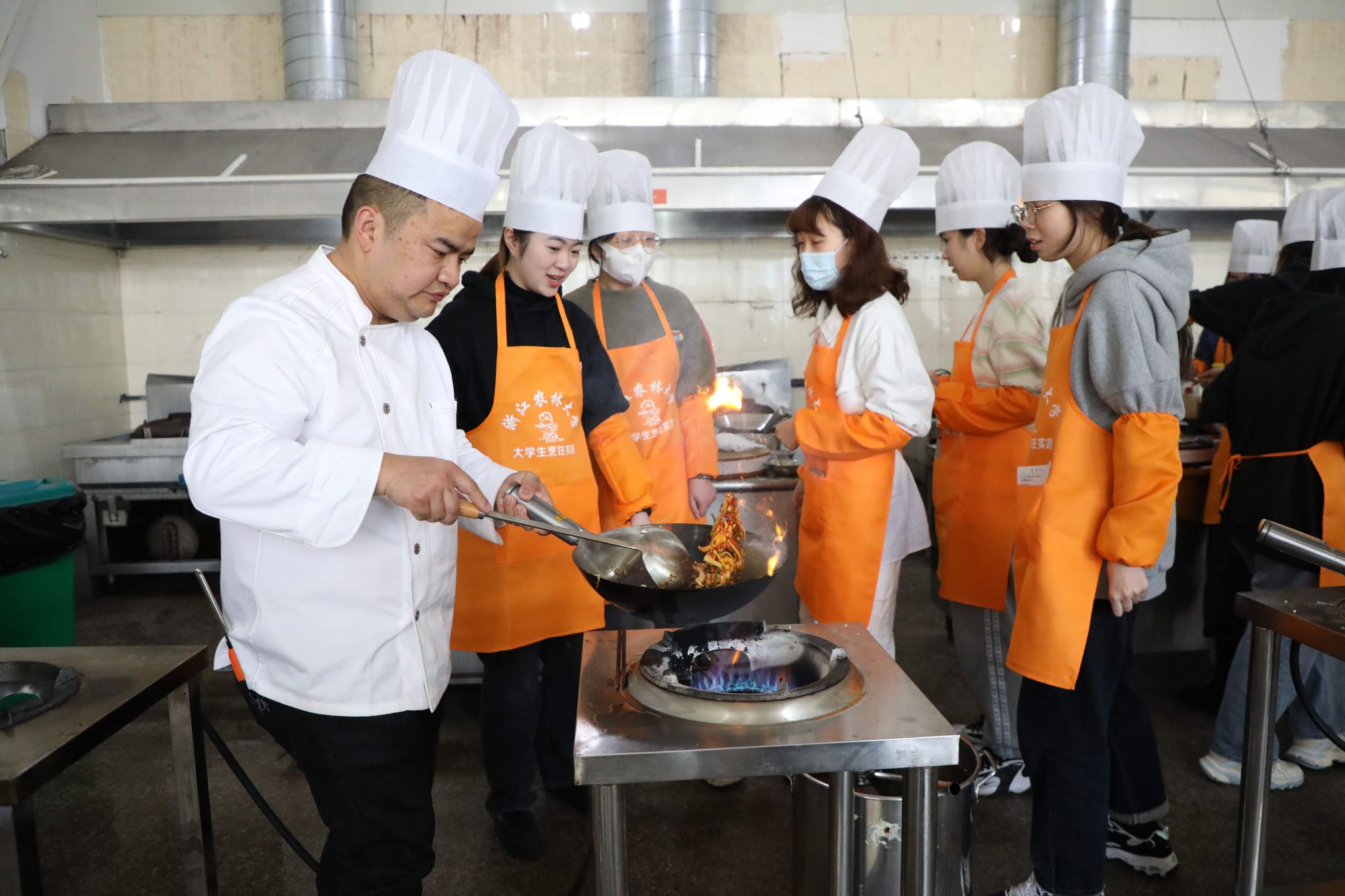 董銘華是中國烹飪大師,也是該校后勤中心的資深廚師長。他燒的一手好菜,十分受師生歡迎,經常還會在周末等空余時間,免費指導學生燒菜,被師生親切稱為“董大廚”。以前的“董大廚”,現在還兼任“董老師”,開始把后勤食堂的灶臺當講臺。“能夠教會學生掌握一些烹飪的技藝,我覺得和做廚師一樣有意義、有成就感。”董銘華說,
