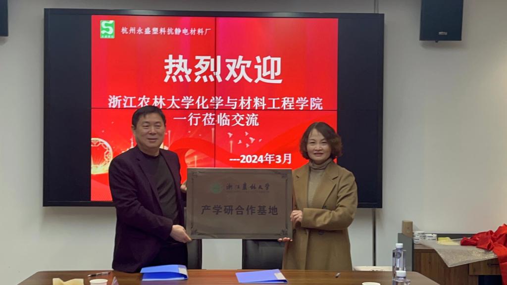 3月13日下午,化材學院與杭州貝盛高分子材料有限公司舉辦的“產學研合作簽約暨基地授牌儀式”在杭州貝盛高分子材料有限公司隆重舉行。化材學院黨委書記謝志新等相關領導、高分子專業負責人戴進峰及專業老師李倩和肖友華,杭州貝盛高分子材料有限公司董事長章德永、總經理方金華、副總俞露帆、廠長章勁松和外貿經理王新苗等參加了座談交流會和簽約授牌儀式。