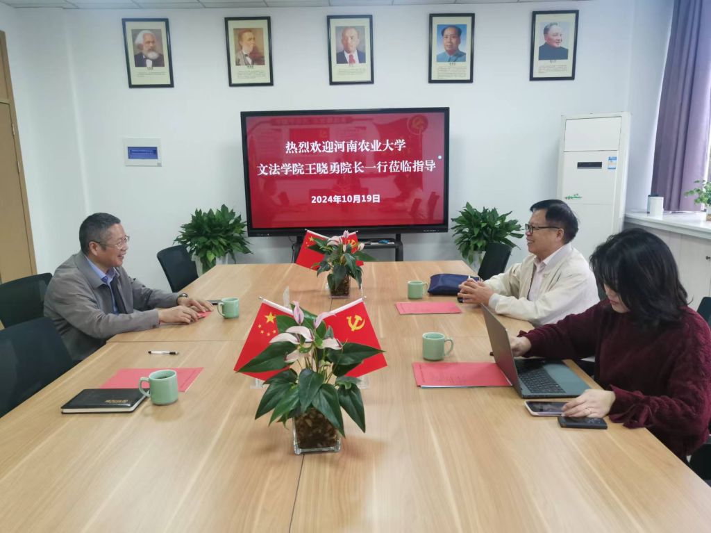 10月19日,河南農業大學文法學院院長王曉勇一行到文法學院調研新文科建設工作,文法學院院長魯可榮接待了王曉勇一行。