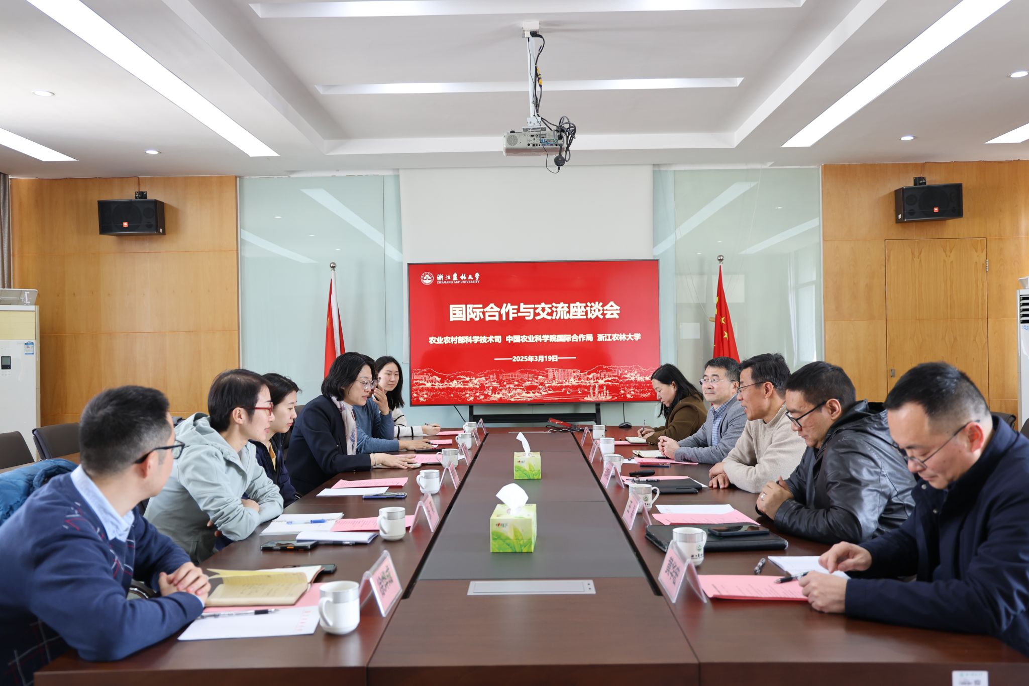 3月19日,農業農村部科學技術司一級主任科員姚俊楊、中國農業科學院國際合作局副局長(主持工作)錢鈺帶隊到林生院調研交流,非洲科學院院士周旭東教授、國際合作與交流處處長王磊和科技處、竹研院相關負責人參加座談會,會議由林生院黨委書記鄭炳松主持。